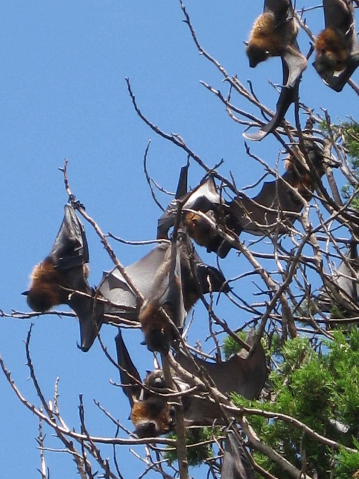 On Sunday, I set about exploring Sydney. I took a trip up to The Rocks district and checked out a street fair, that reminded me a lot of the Ballard and Fremont markets. Then a walk through the botanical gardens took me past trees full of bats! Fruit bats I guess. I’ve never seen a bat before. Very cool! The gardens were very beautiful, and full of pretty and unique looking flowers.
