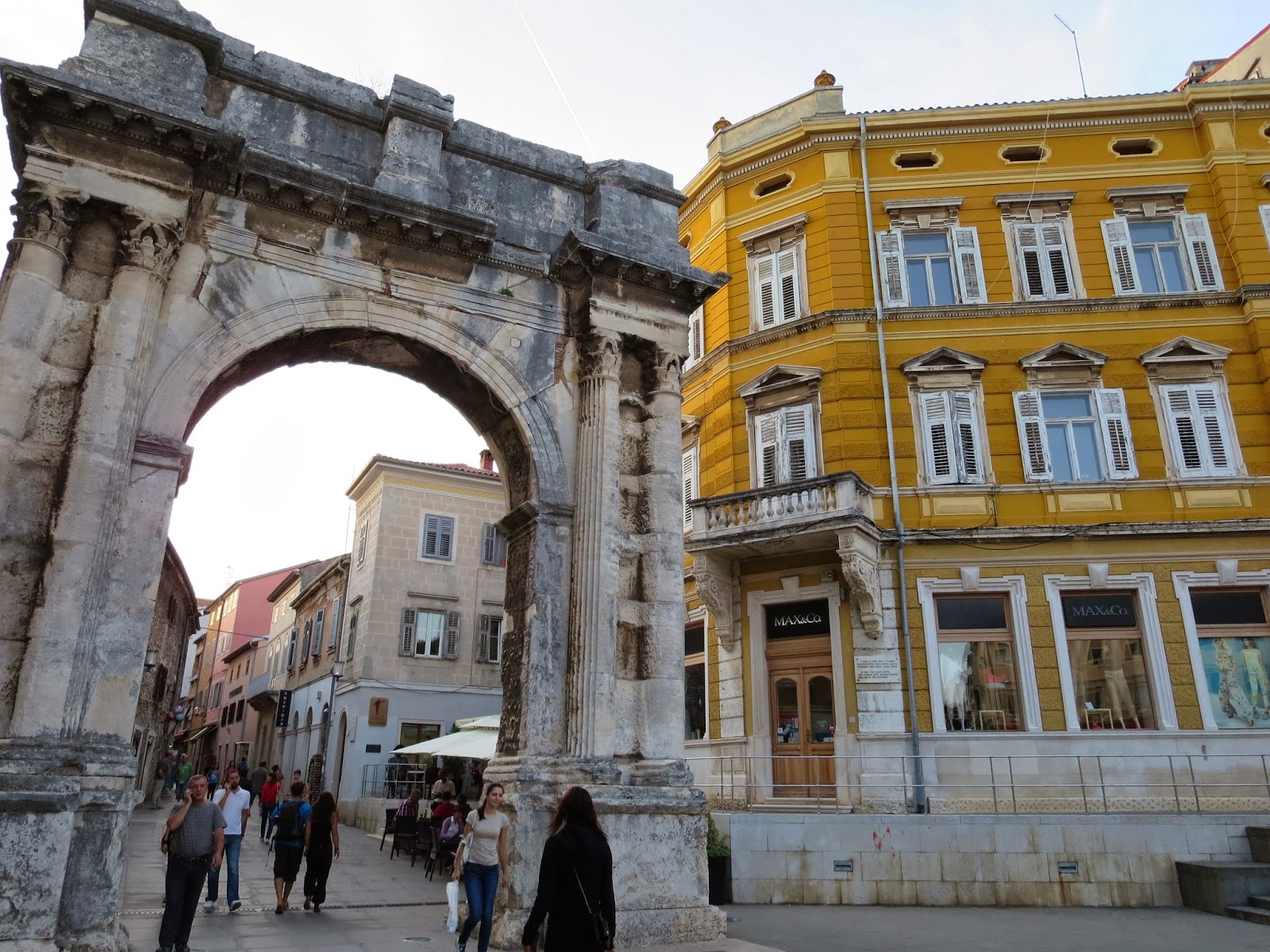 We lounged until it got cold, then went to explore Pula, which is the largest city on the Istria Peninsula. The architecture was interesting, the food was delicious, and there was a miniature size city for Grandpa Max to stomp around on like Godzilla. All in all, an excellent day =D