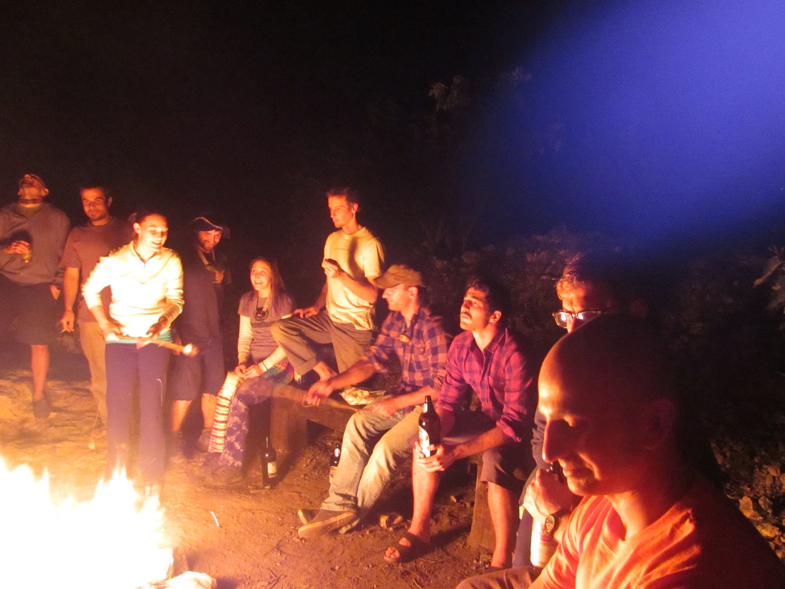 After dinner, everyone adjourned to the fire pit, where we built a raging inferno and chatted about, what else? Climbing!