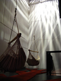 The architecture of the hotel was very eclectic. There was a lot of wasted space, with giant hallways crisscrossing and these super tall hanging chairs. Very cool vibe.