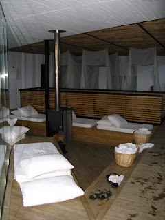 Did I mention the rooftop spa, complete with three outdoor pool/hot tubs, rooms for messages, a sauna, and beds for general lounging? Yeah, I could definitely live there.