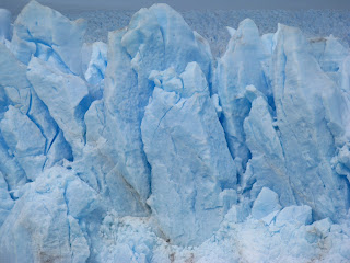 The BIGGEST reason we went to El Calafete was to check out the world famous Perito Moreno glacier. It is one of three glaciers in the world that is actually growing in size. The ice moves down the mountain in a massive sheet, and then eventually meets with water where it calves off in giant chunks. This was a truly amazing sight. The ice you see out of the water rises 60 meters (about 180 feet) above the water, and it can be more than twice as long underwater. I think the photos speak for themselves.