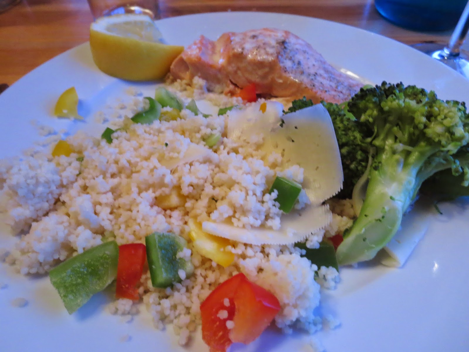 We found enough provisions and were able to make a delicious dinner of salmon (fresh!), cous cous, and veggies: