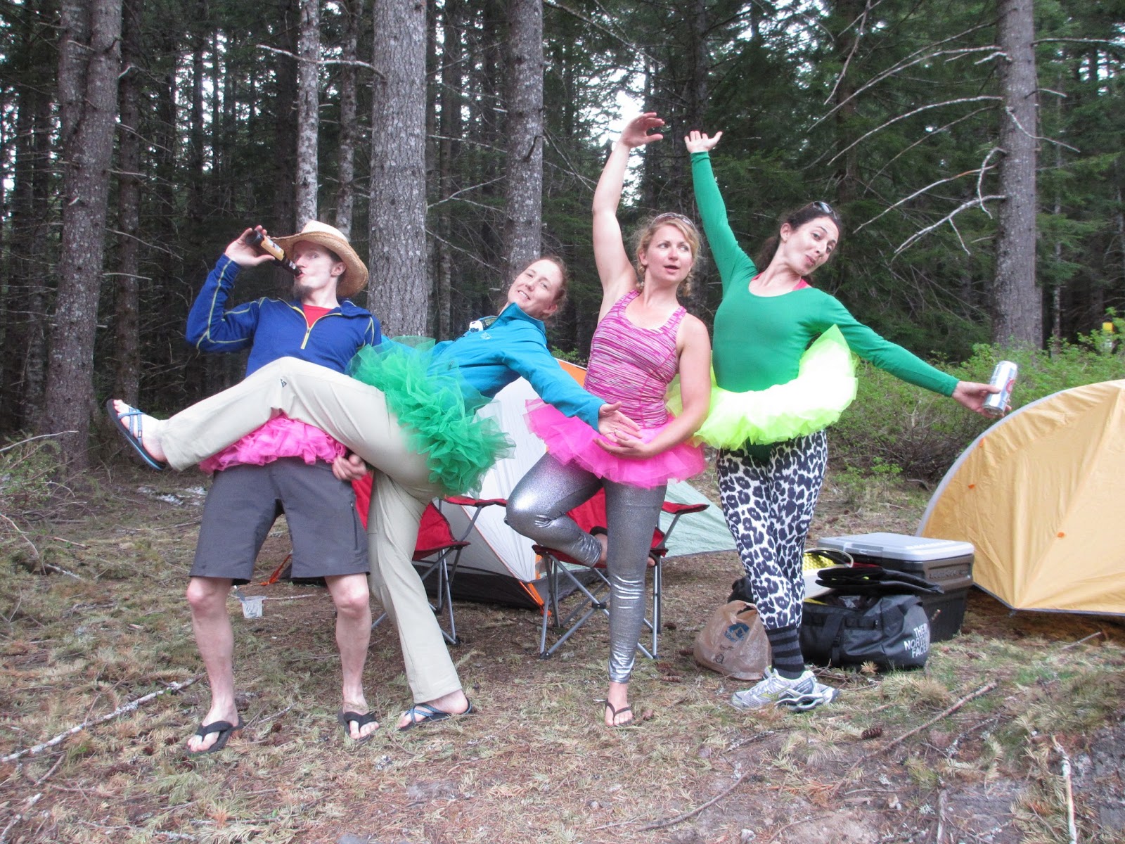 Sleep in a tent. Preferably with a hot lady (in white leopard print tights). Extra bonus points for setting up the tent while wearing a tutu.
