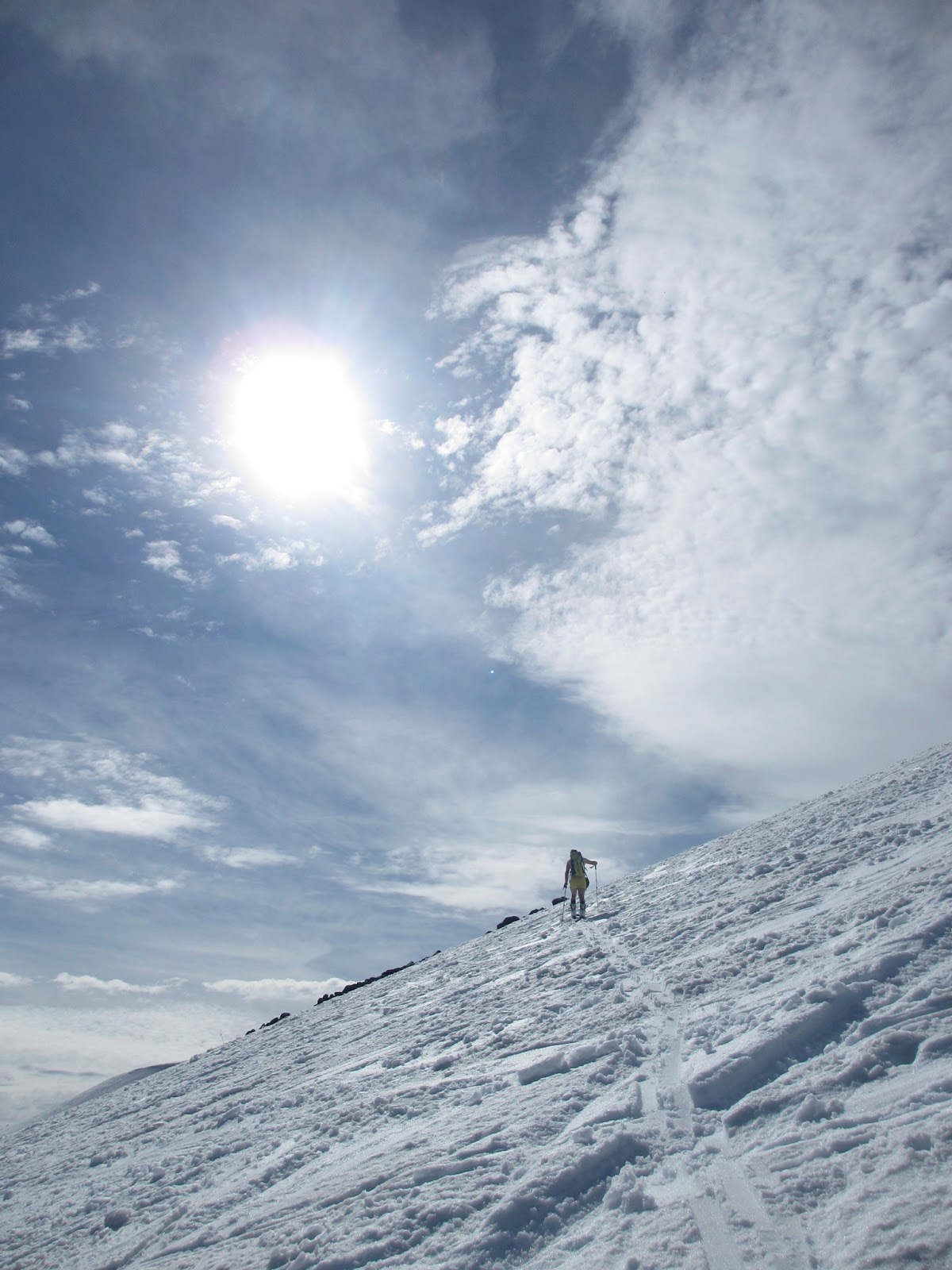| Bram putting in a skin track. In a dress. |