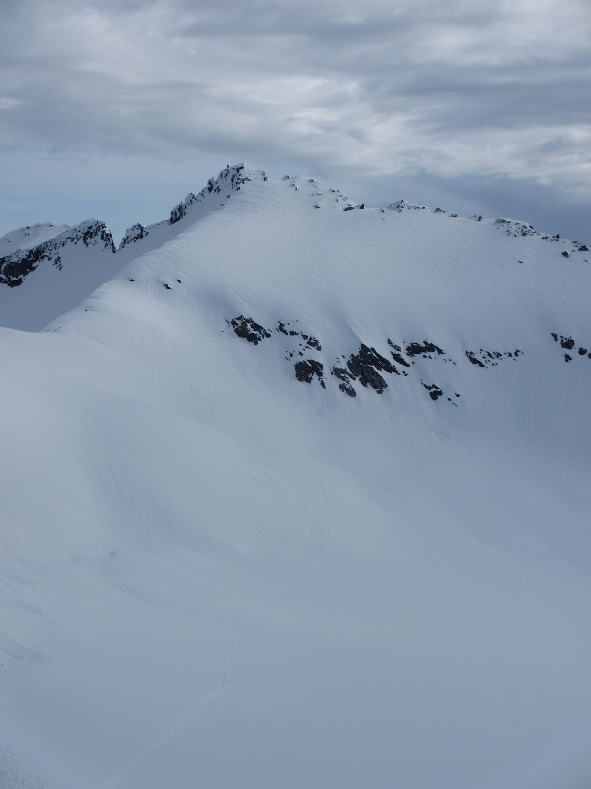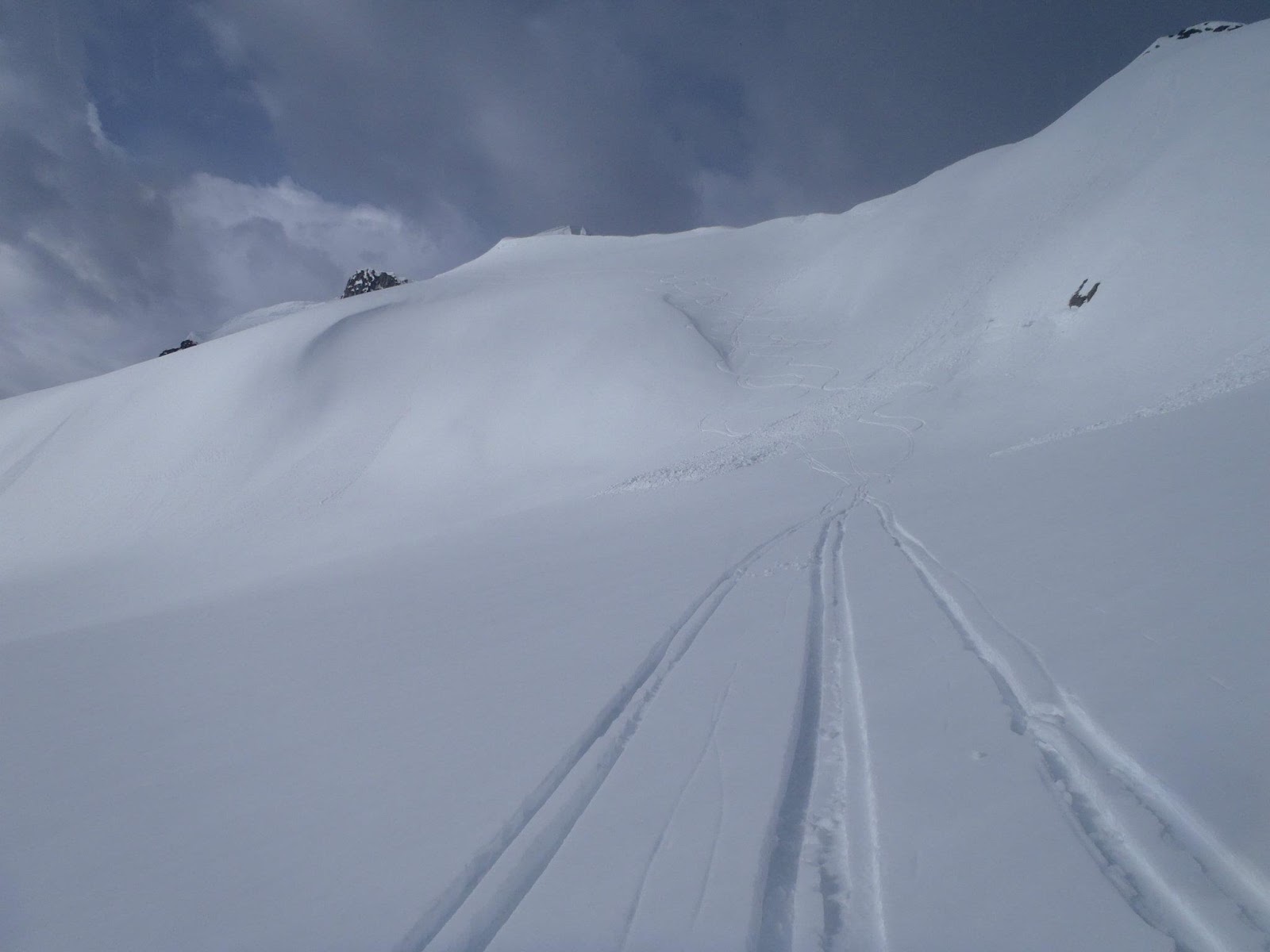 Skiing off of Little Devil was better than anticipated. We made a couple of long cuts across the bowl to make sure nothing slid, and generally enjoyed the skiing.