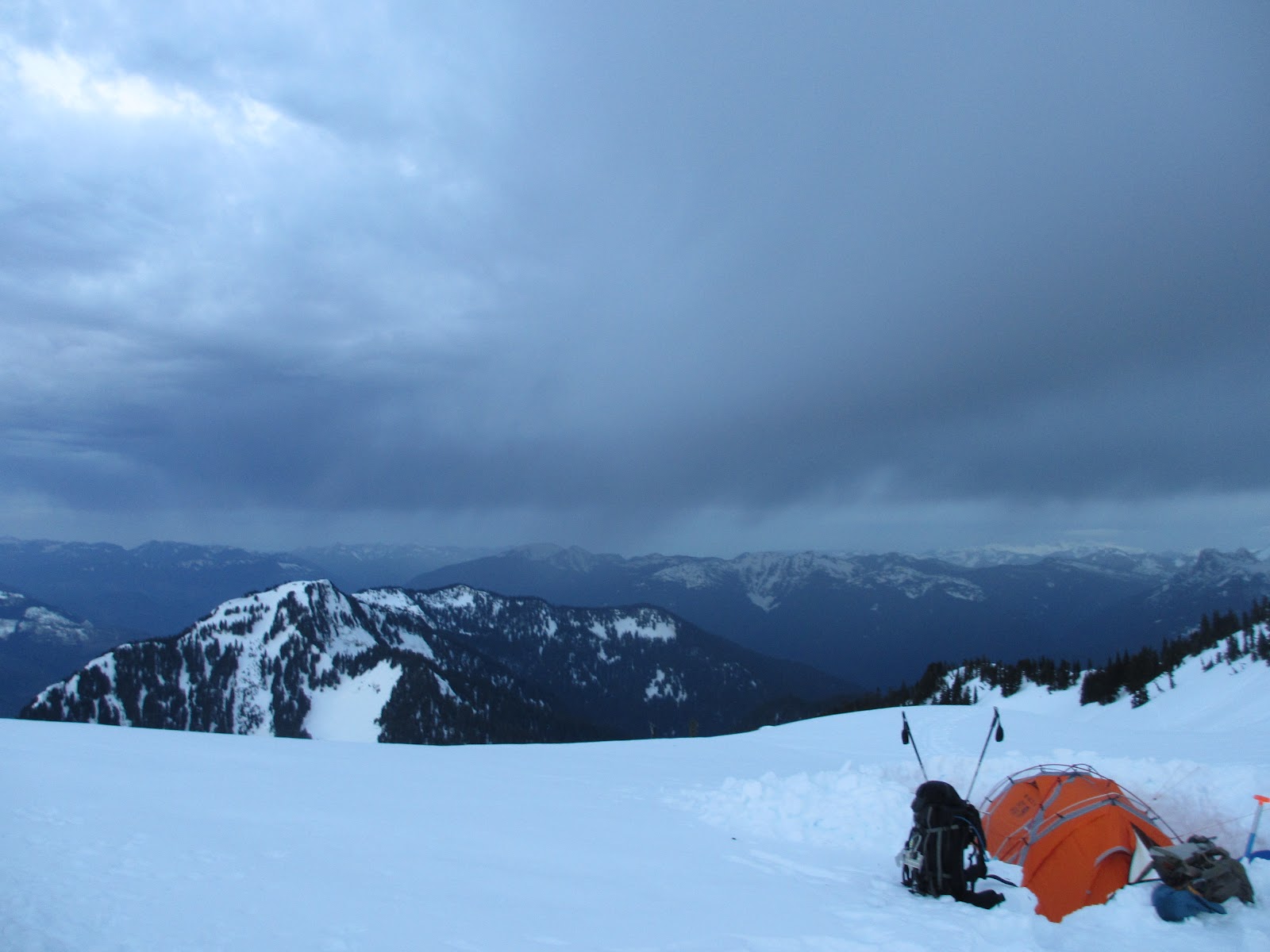 The rest of the trip back to camp went smoothly. We packed up our tents, ate some much needed food, and started on our ski trip down. The snow was wet and miserably heavy. I fell a number of times due to thigh muscle fatigue. Skiing in that stuff is hard enough, let alone with a 35lb pack.