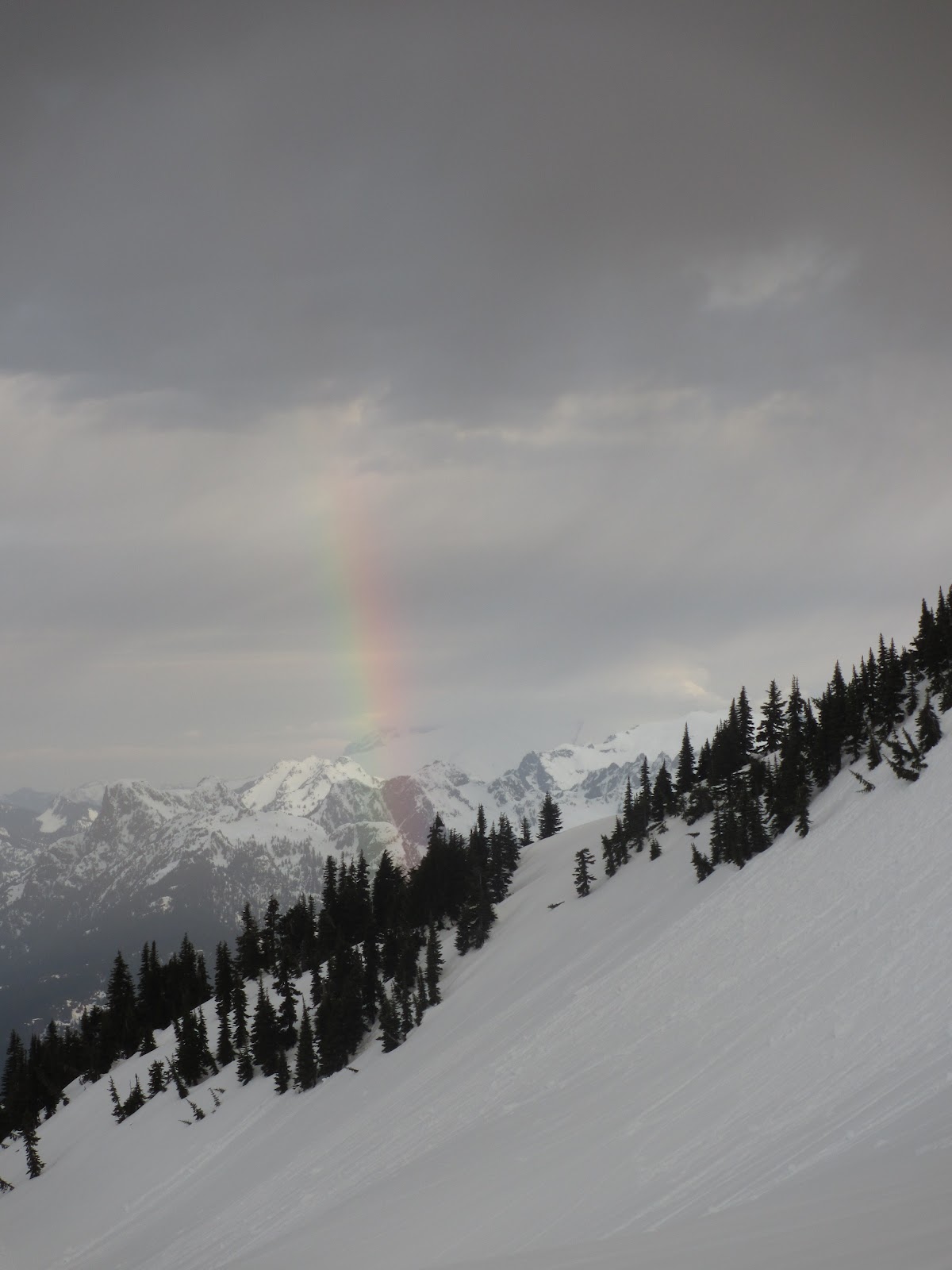 We awoke on Sunday morning to clouds and rainbows. There was definitely a storm coming in and we were glad we planned to get out of camp by 5:45am to start towards the peak. We estimated it would take about 3 hours to get there.