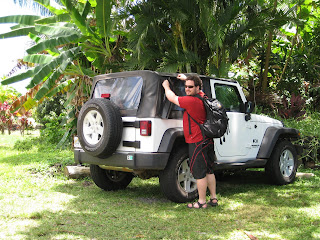 Here’s our lovely Jeep, which was actually pretty fun to zip around in. We took the top off most of the time, and when we emerged from the cave the weather had improved enough for a little top-down action.