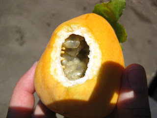 For a snack one day, we had Passion Fruit. You take a bite out of the outside then suck out the gooey innards. Kinda looks like brain or eyeballs. I have to say it was tasty and delicious.