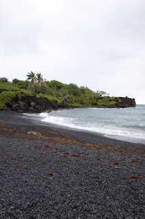 After our volcano visit, we decided to drive around the island to Hana. We stopped at this black sand beach along the way. As you can see, it was still a little overcast this morning. I’m glad that the sun poked out later!
