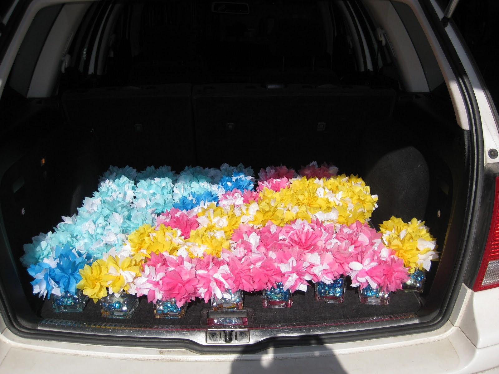 Wedding Prep – Carload of paper flowers