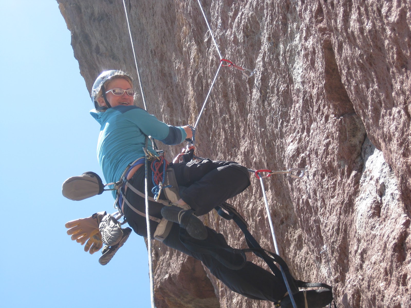 We shared a few celebratory cheers then it was time to rappel down. I was definitely excited about the rappelling! Open air long rap? YES PLEASE! Unfortunately, due to rope weight, the rap was not as exciting (read: fast) as I had hoped but we all made it down in once piece, happy with our work for the day!