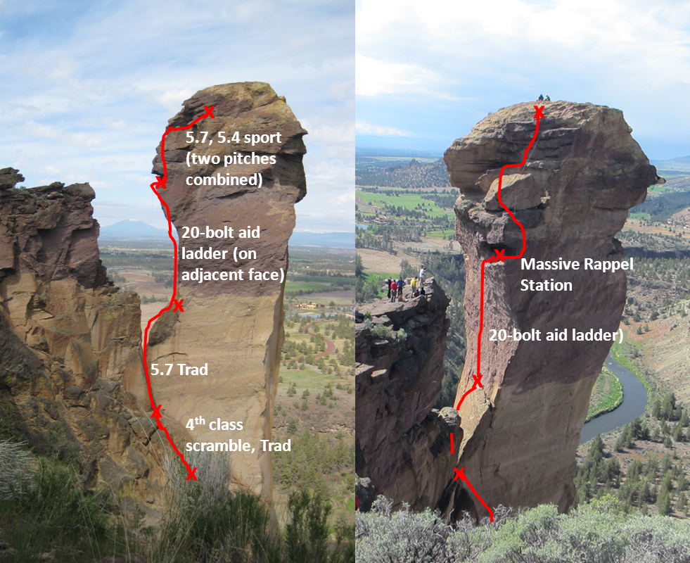 Monkey Face at Smith Rock, Oregon. The iconic 350 foot rock pillar stands is the centerpiece of Smith Rock State Park, and has a number of challenging routes to the summit.