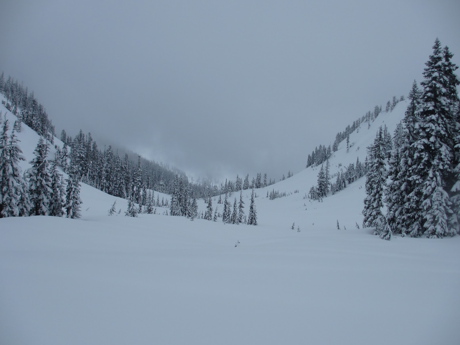 Lake Basin at the bottom of our route. I love how quiet snow makes everything.