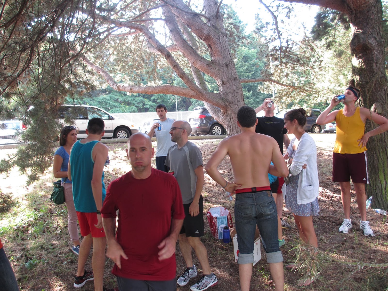 We convened at Greenlake Park at 5pm to beer mile on the dirt track. Our staging (read: beer chugging) area was tucked away at the west end of the track, semi-conspicuously under some low hanging branches. With the rules explained (there’s only one important rule: no puking or you’re DQ’d [or given the option to drink an extra beer, blegh]), we all selected our drink of choice and raised our cans in honor of Adam’s Birthday.