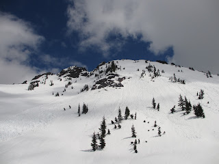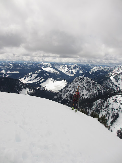 One weekend in April, James and I decided to head up to Red Mountain for a little spring corn action. The route to the summit shares the start with Slot Coulior, meaning we hiked adjacent to Phantom Face and skied down close to the same route we came up. Luckily on my trip with James, I did NOT lose my helmet or have any other unfortunate incidents, although we both almost fell into a river…. James may have tossed my ski in the water on accident, but it’s okay, I may have hit him in the face with my pole accidently, so these things have a way of working themselves out….All in all we had a great day! We had to boot pack the last bit to the summit (since it’s steep), but the weather was decent and the snow was some of the best corn I’ve ever skied! Thanks Red!