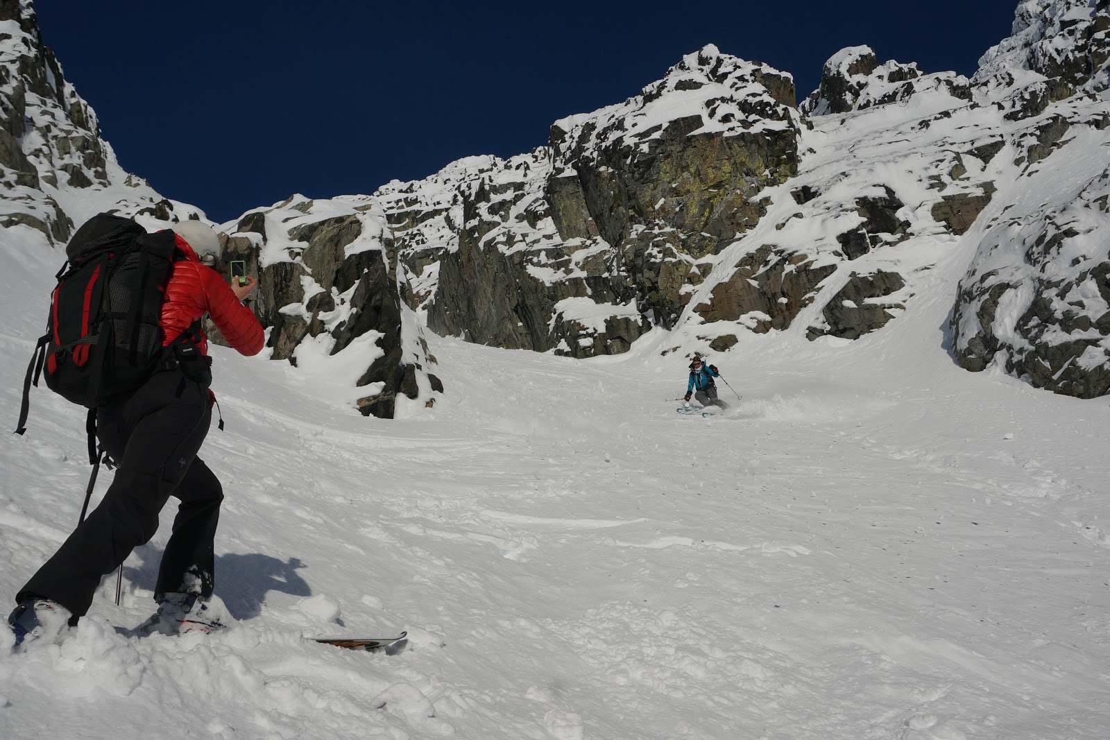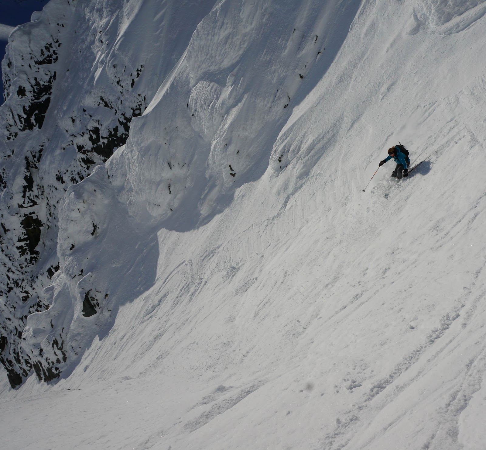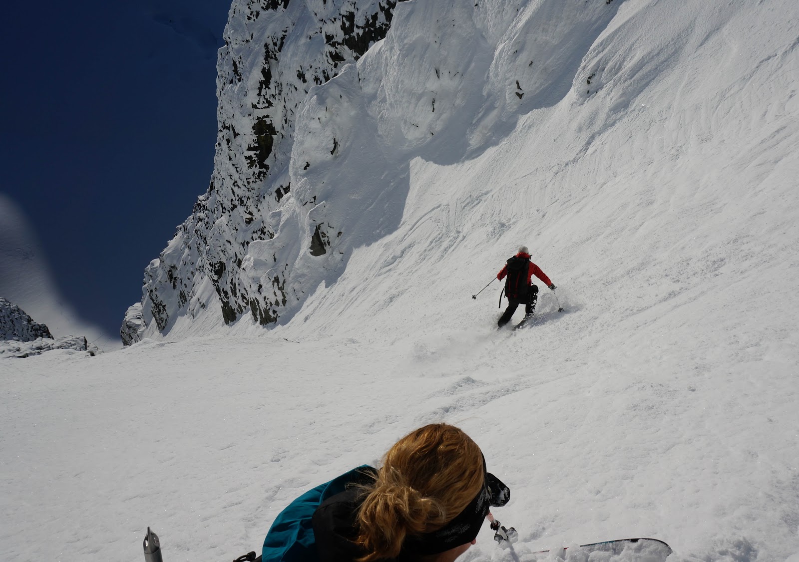 The ski descent was steep; stable; springy; SOLID! Basically one of the best backcountry runs I’ve ever taken. I believe I had, and this is the technical term, a “shit-eating grin” on my face the whole way down. So did Andrew and Alice.