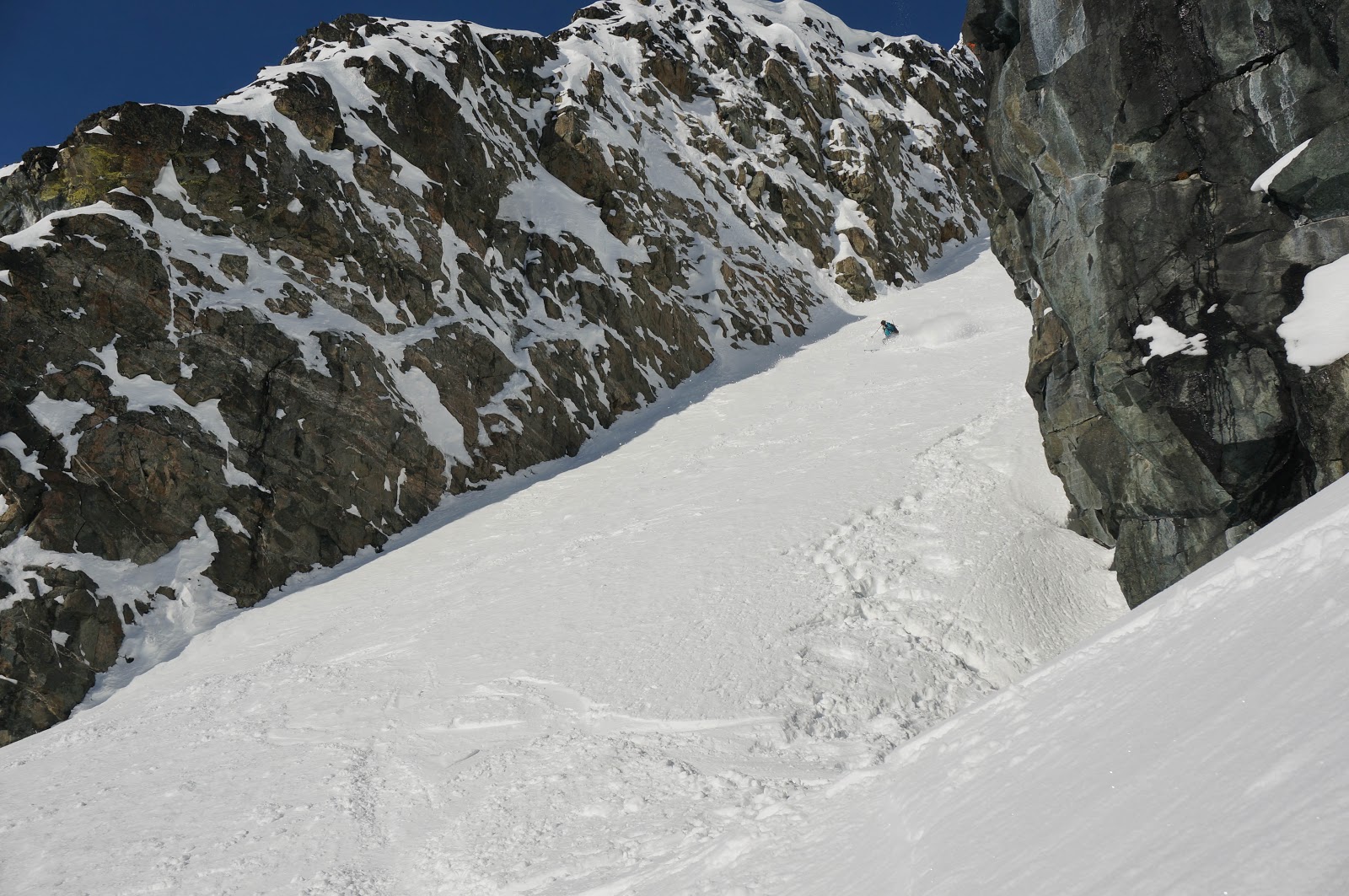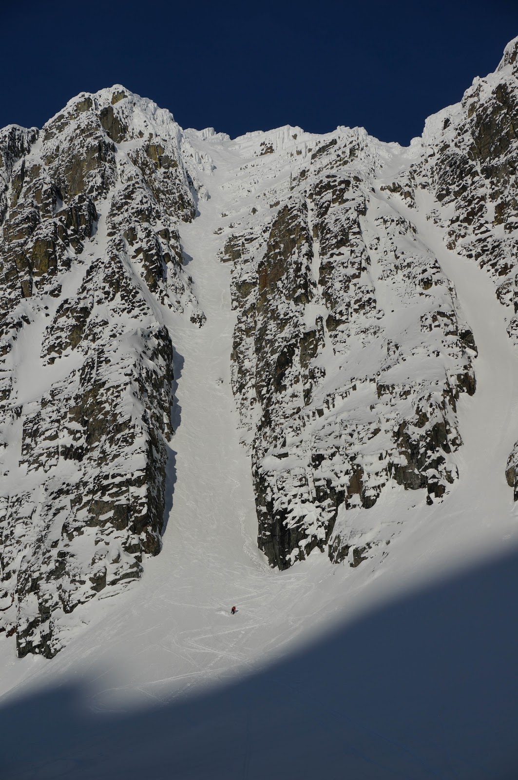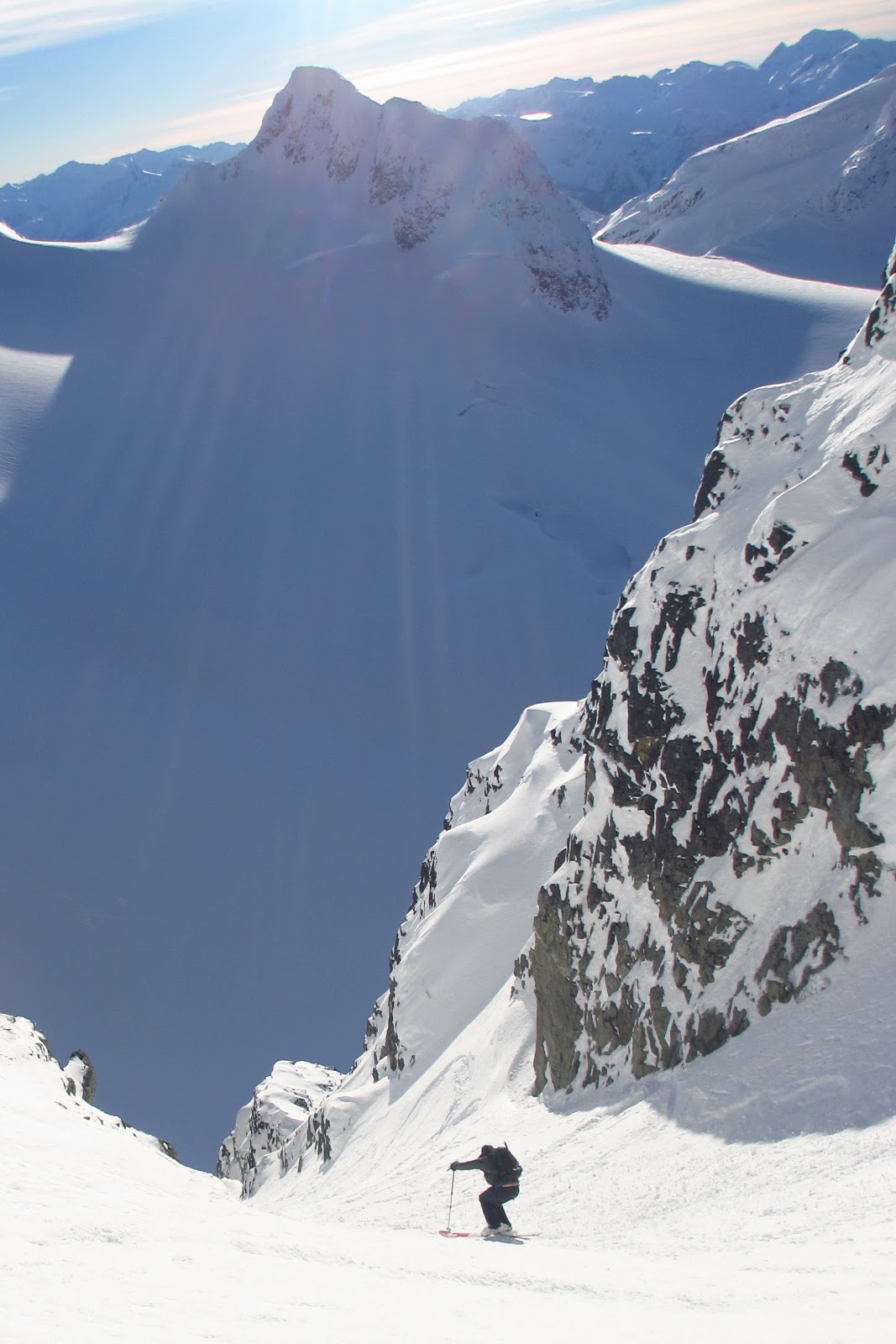 In my last post I took you to the top of Mt. Joffre via the Aussie Coulior. Because it’s just such a damn beautiful line, here’s the photo for you again: