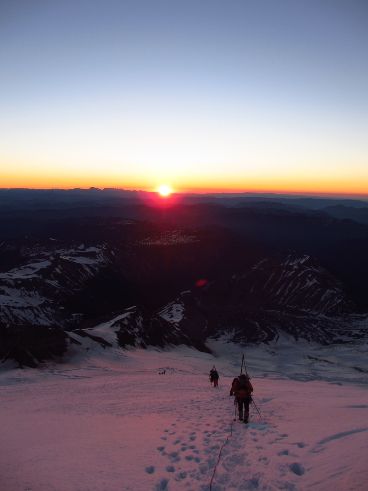 Camp Schurman sits at 9,640′ and climbs steadily up, up, up until you reach the summit cone. From camp, you can see at least 2,000 feet, so the climbing trail is pretty visible. “Looks easy enough,” you think to yourself the night before the climb. Then you get on the mountain and realize the scale of things. People who seem right there are 20 minutes ahead of you, and you can climb for hours only to feel like you’ve only gone a few steps. Its maddening and rewarding all at the same time.