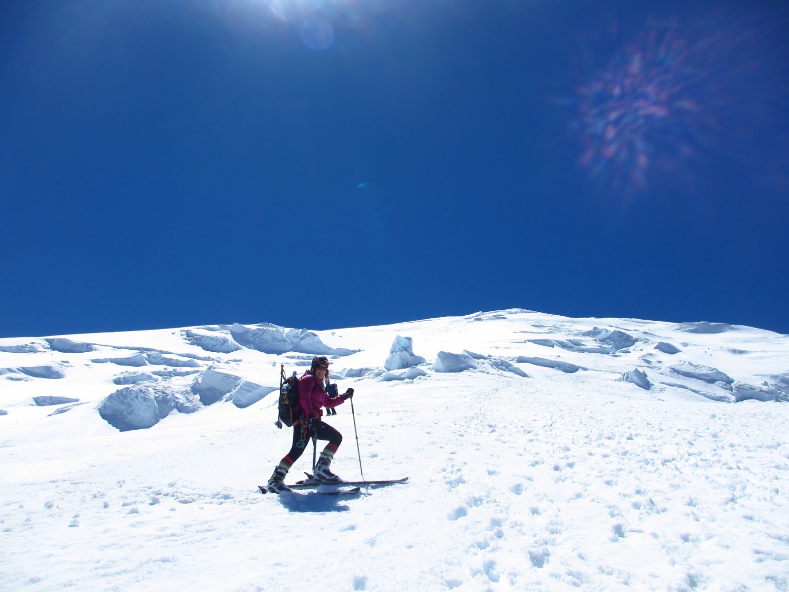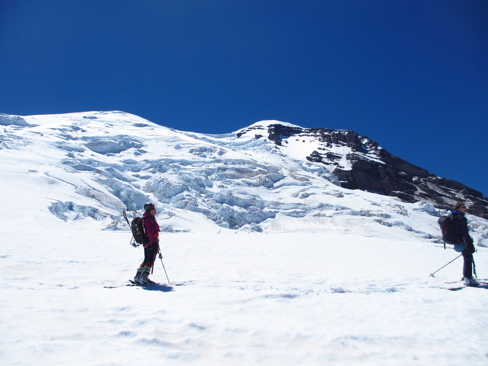 After what felt like sleeping for both an eternity and only a moment, we arose to calm, clear skies. The weather report had been calling for thunderstorms, so we were all pretty surprised (STOKED!) to see so many stars in the sky. With our skis on packs, ice-axes in hand, and climbing harnesses secured, we left camp about 3:20am to start the climb.