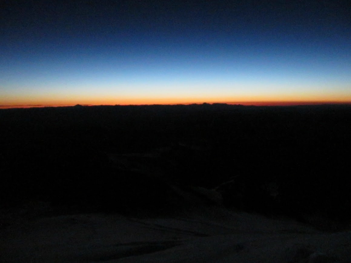 We finally crawled into our sleeping bags around 9:30 while it was still light outside. We did a little good-weather dance in our tents, and tried our darnedest to fall asleep. The alarm was set for 2am.