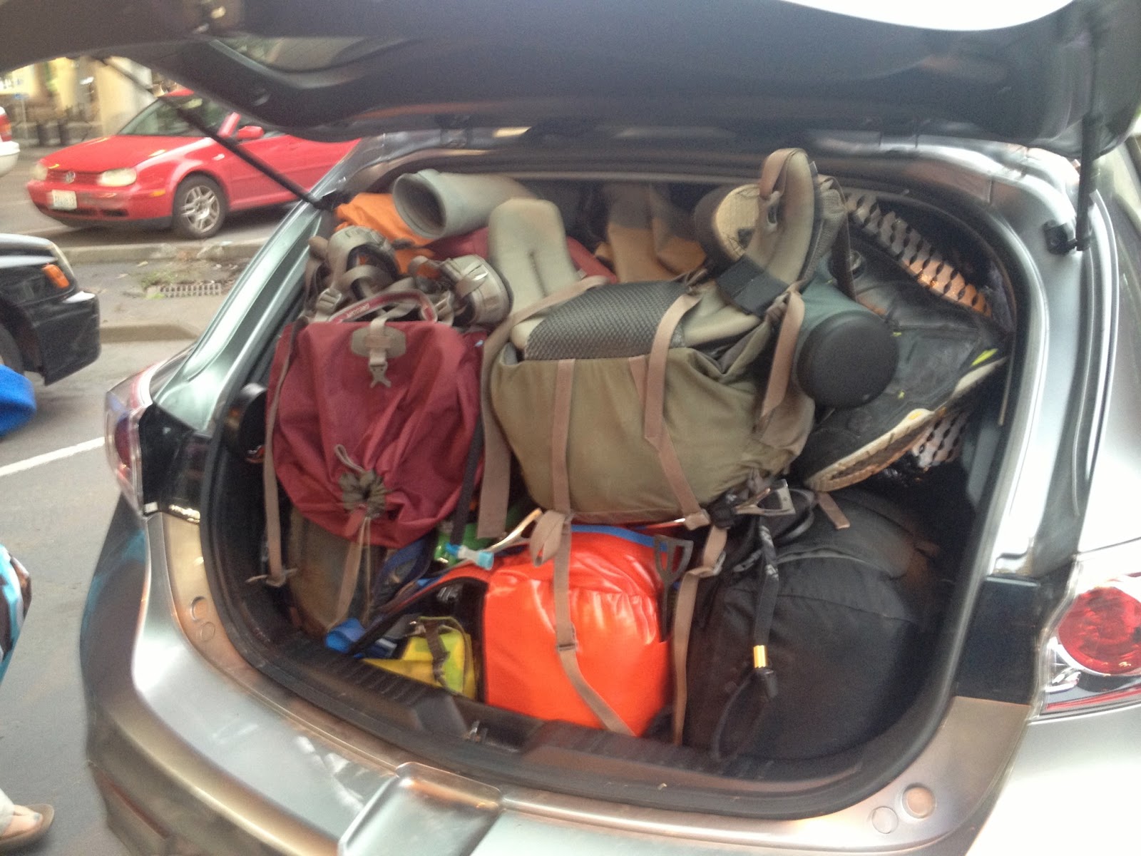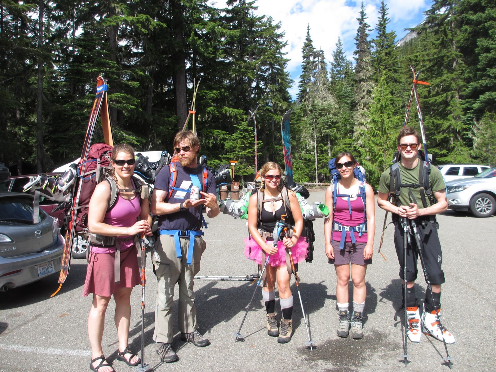 The adventure started on Saturday morning when 5 of us expertly Tetris’d a Mazda hatchback. We successfully fit all of our mountaineering and skiing gear for the trip up the Emmons route. Our stoke level was high as we drove the 2+ hours to Mount Rainier National Park, where we picked up permits and snagged the very last spot in the White River parking lot. We packed our gear and began the trek up to the InterGlacier.