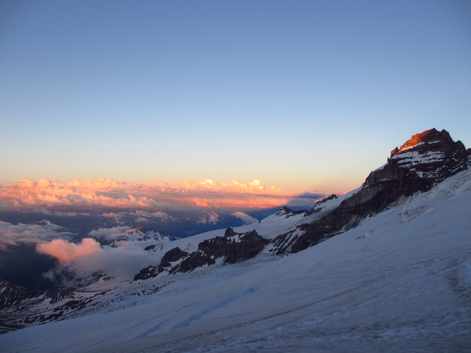 The mountain came out to say goodbye on the hike out. I still really can’t believe I summitted. Thanks to Jesse and James for loaning me gear, and a special shout out to Kyle for giving such a fantastic calf massage. And of course to Jenny, Kyle, Ben, and Cori: you are the people that adventure dreams are made of – thanks for being awesome.