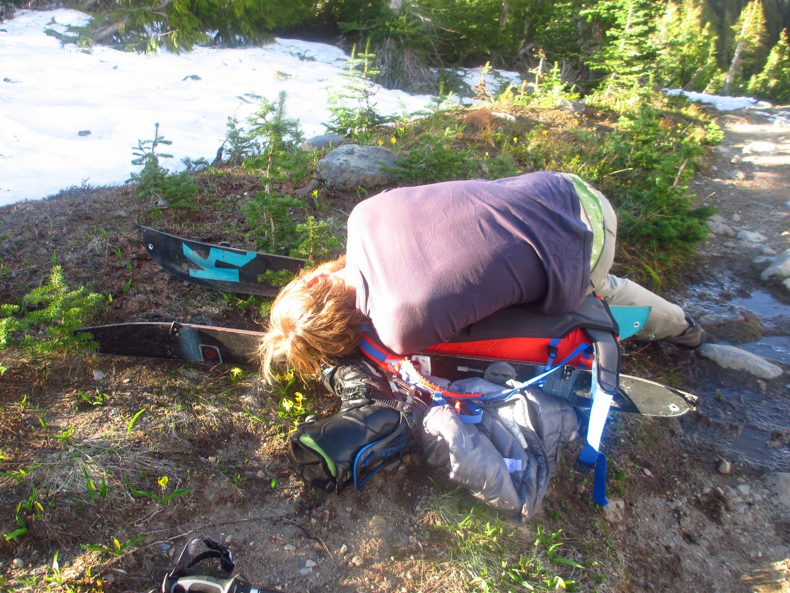 I swapped back into my hiking boots (yes I was still wearing the tutu) and we began the worst part of any backcountry trip, the walk back to the car. Kyle laid down while we were loitering and I’m pretty sure he fell asleep like this: