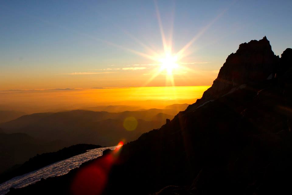 | Meeting the Stinky Man – Sunrise summit cone in background |