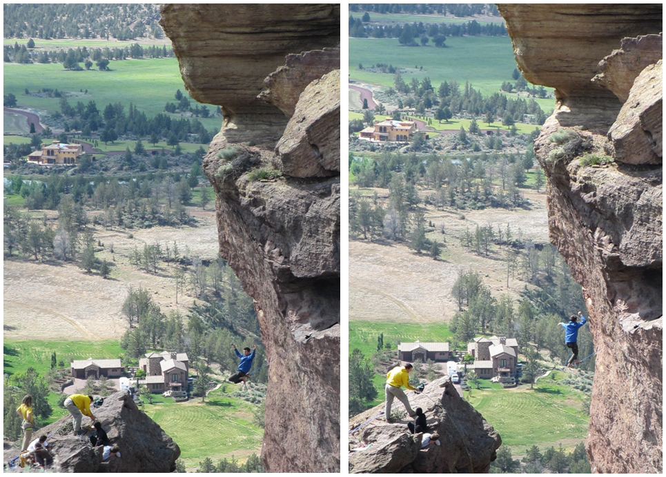 I’ve been to Smith Rock many times now – it’s become somewhat of a tradition for THE GROUP – but until recently I had never seen the legendary rope swing. I had heard of it, but it always eluded me. Well, on this last trip, we lucked out, because in May some hooligans (get off my lawn!) set up the rope swing at the top of Monkey Face, a free standing pillar formation ideal for swinging – refresh your memory of Monkey Face here.