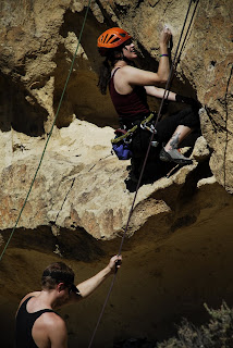 Monday morning we begrudgingly emerged from our tents bright and early to get some climbing in before heading back to Sea-town. I started off leading a 5.9 with a classic “smith” start, i.e. there’s a huge human-sized hole where you would normally find foot holds. Good thing I’ve been working on my “guns”.