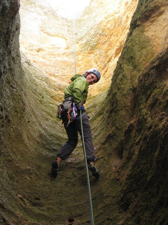 Because of the long traverse pitch, we had to rappel down through a different set of anchors. Sometimes this can be quite an experience in an of itself, and not in a good way. However, in this case we were very pleasantly suprised to discover an open air rappel through a super cool mini-cave/canyon.