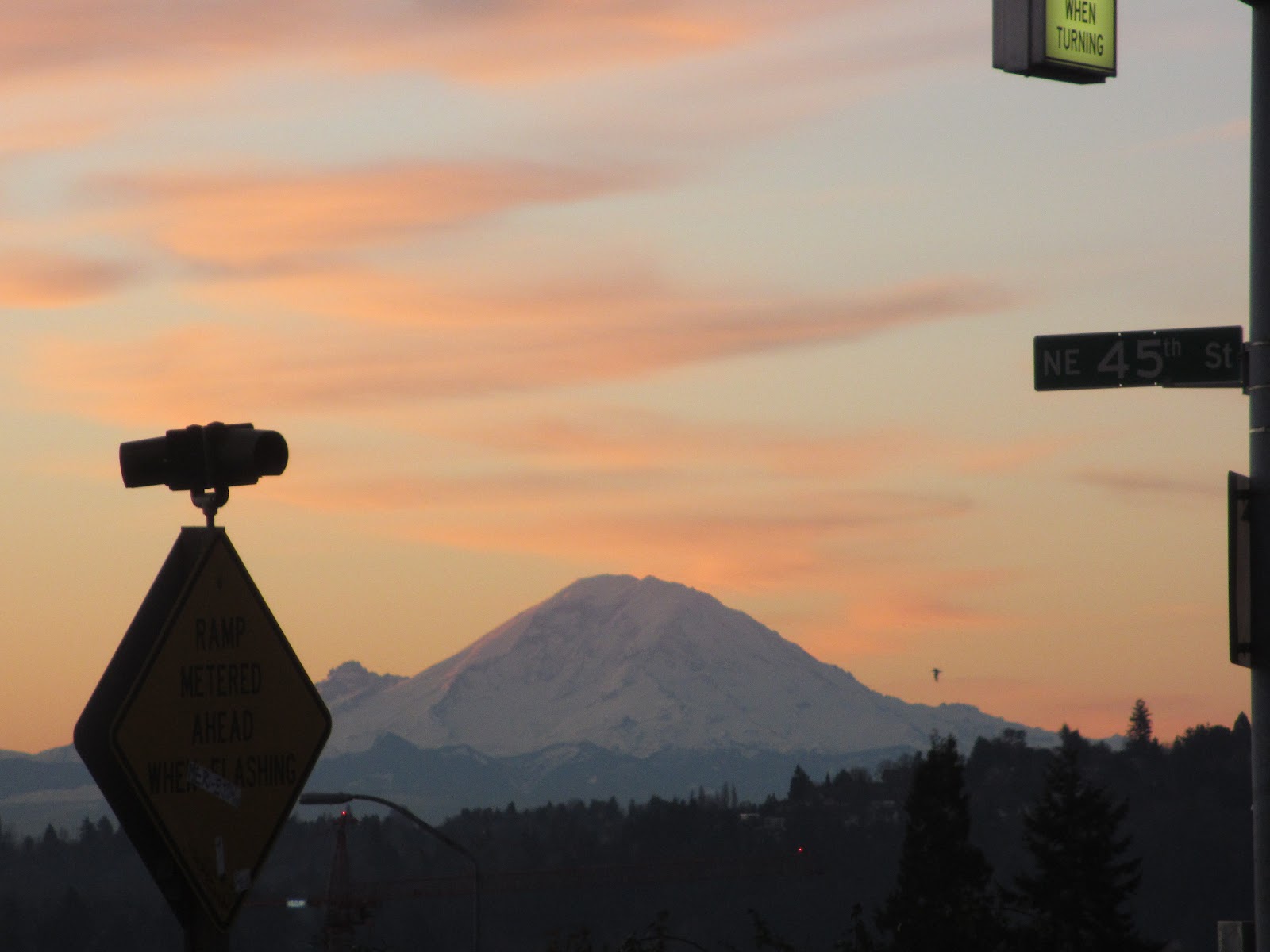 | The Olympics poking out under the 99 bridge. I don’t have any special filters, it was really this pink! |