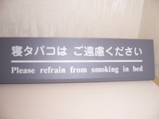The first night we stayed at a hotel in Osaka, which was desinged for the traveling businesman, and housed one-person to a teeny tiny room. Here was the sign next to my bed:
