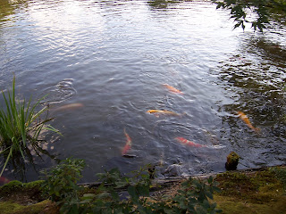 But there were LOTS of insects crawling around…oh and Koi fish. The fish I liked, the spider, which it’s hard to get perspective, was the size of my thumb, and that I didn’t take so kindly to. There were huge webs all over the place too, as you can see it’s strung out between some mammoth trees!