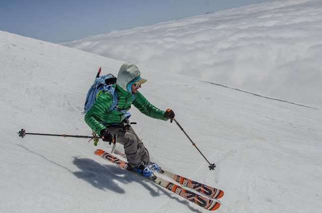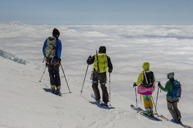 As I’ve become more seasoned in Turns All Year, I’ve come to learn the cadence of the local stratovolcanoes. You want to start at Mt. St. Helens, as it’s the lowest and melts out quickly. It also doesn’t have glaciers which can be easily accessed. Next you want to go for the big lines on Mt. Rainier, like the Fuhrer Finger or Kautz, before they pass their prime. It’s a good idea to get the Pearly Gates on Mt. Hood early too. Then comes the SW Chutes season on Mt Adams, te Squak/Easton season on Mt. Baker, and the Emmons Route on Mt. Rainier. From there, the world is your oyster…. burly, bumpy, and requiring a lot of effort for a small, slimy piece of adventure which may or may not be good by the time you taste it.