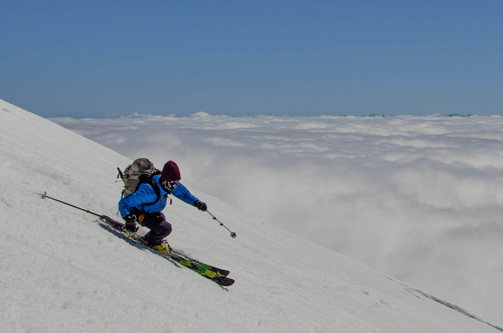 As I’ve become more seasoned in Turns All Year, I’ve come to learn the cadence of the local stratovolcanoes. You want to start at Mt. St. Helens, as it’s the lowest and melts out quickly. It also doesn’t have glaciers which can be easily accessed. Next you want to go for the big lines on Mt. Rainier, like the Fuhrer Finger or Kautz, before they pass their prime. It’s a good idea to get the Pearly Gates on Mt. Hood early too. Then comes the SW Chutes season on Mt Adams, te Squak/Easton season on Mt. Baker, and the Emmons Route on Mt. Rainier. From there, the world is your oyster…. burly, bumpy, and requiring a lot of effort for a small, slimy piece of adventure which may or may not be good by the time you taste it.