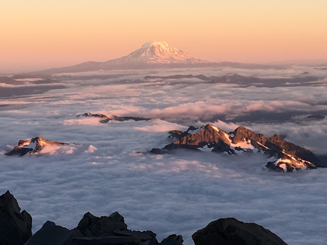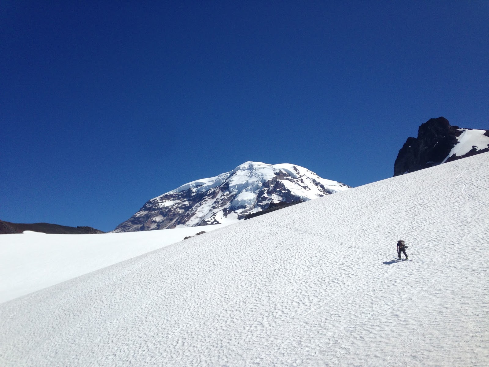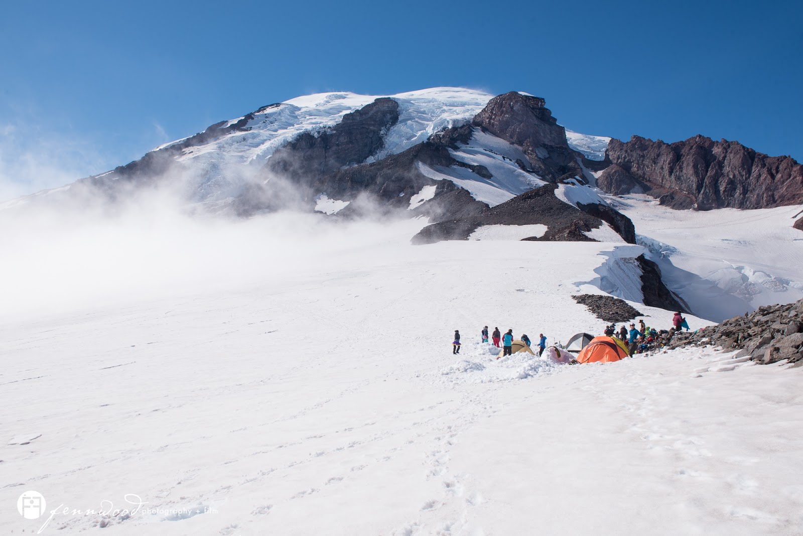 To make the most of July, I spent five days playing on the snow. Some of the crew from Lisa’s Birthday trip made a pilgrimage back to the Russell Glacier for a two day retreat. Then, I joined 20 rad women (and one awesome dude) for 3-days on Mt. Rainier in support of the SheJumps fundraising climb (more on SheJumps here). The SheJumps trip was especially rewarding knowing I had a small part in helping get 6/8 climbers (and 3/4 guides who also volunteered their time) to the summit while raising nearly $25,000 for SheJumps!