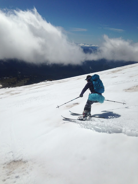 After an hour of skinnig, we’d reach 8400′ and Theresa and I had had enough. It was beer:thirty, so we called it and said goodbye to our friends. We broke out the Rainier Beer.