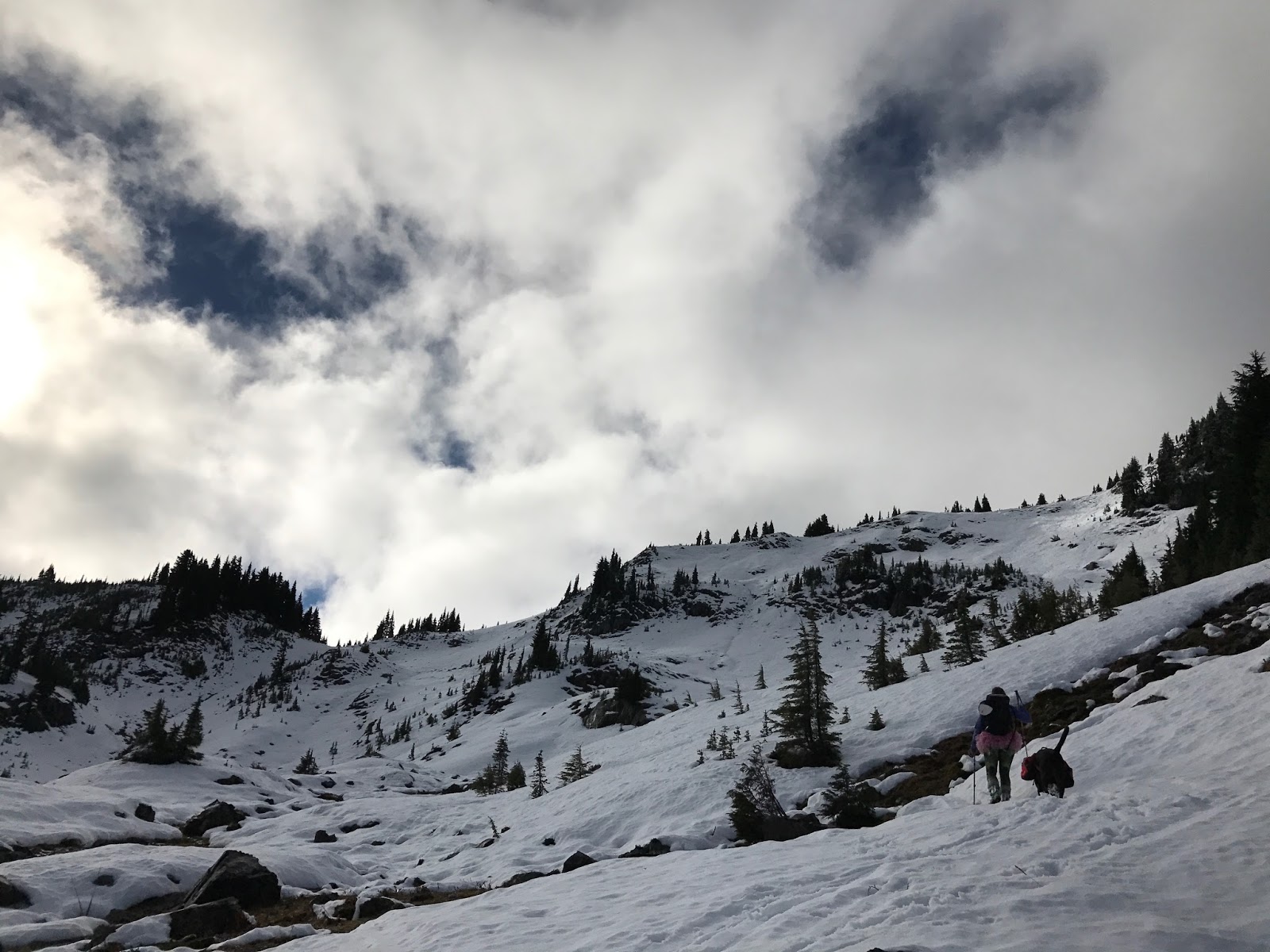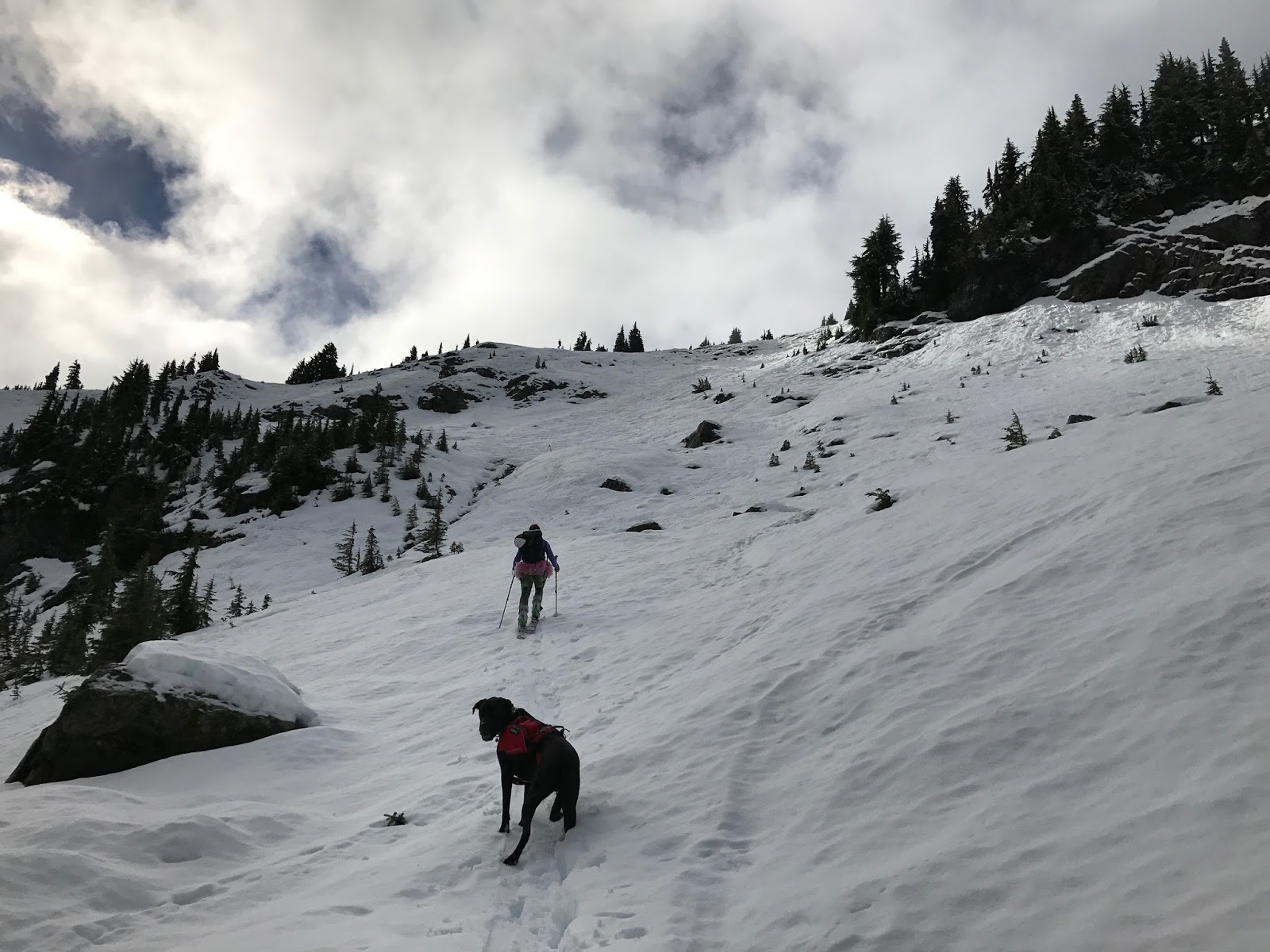 | Time to skin! Strider post-holed the whole way poor thing. |