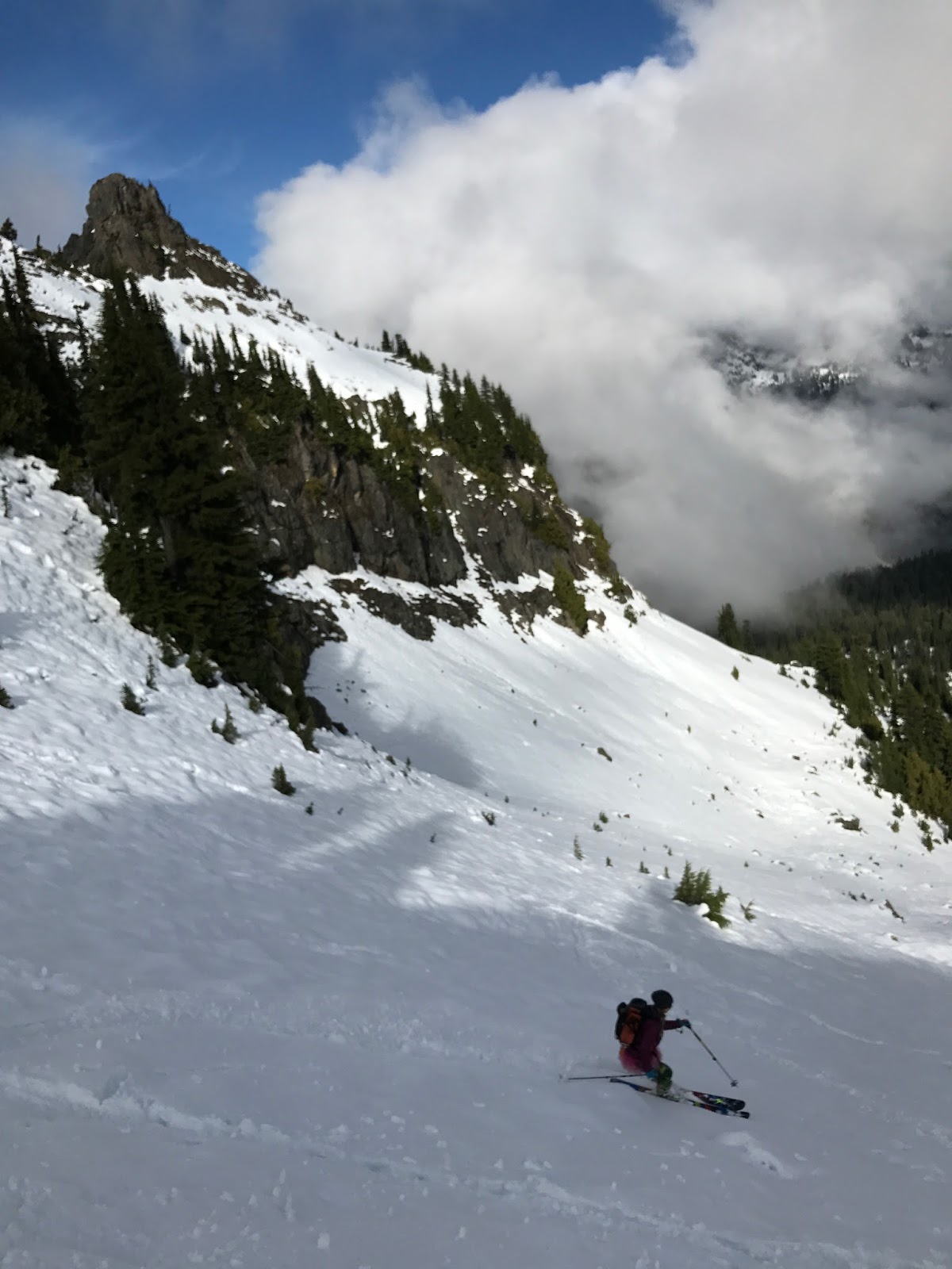 I got to know Christy at more ladies’ events, and have been lucky enough to partner with her on a few SheJumps/Mountaineers events. We’ve traveled together, enjoying turns together at Alta, SnowBird, and Schweitzer. We also shared a few soul-restoring days together at our local Crystal Mountain.