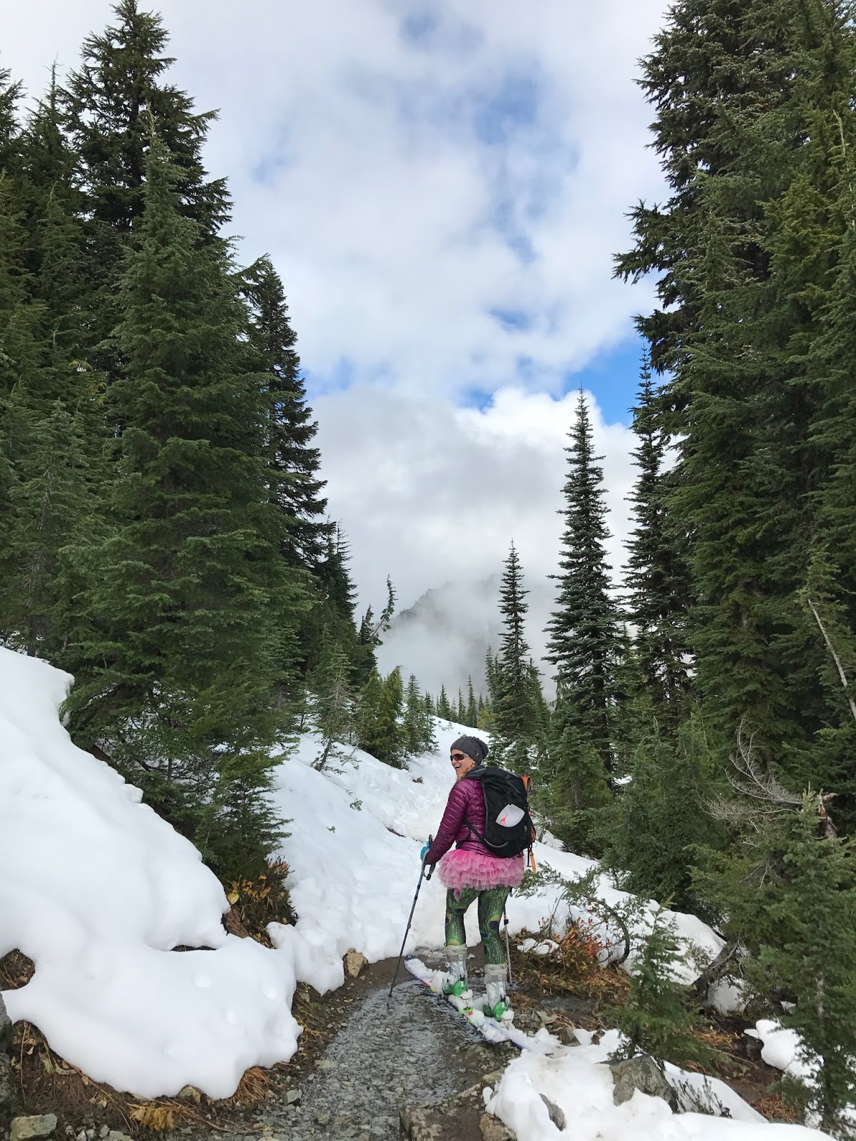 I met Christy in October 2014 when she attended an event at The Mountaineers. We were premiering Pretty Faces, a ski film featuring only women, and Christy volunteered to help. She showed up in bright red ski bibs, adorned with a white helmet with a pink mohawk and glowing unicorn horn. This girl had ridiculousness written all over her, and I knew immediately we needed to be best friends forever.