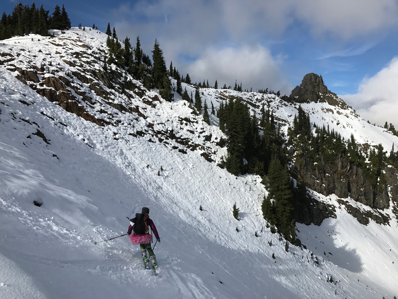 Then we “skied” down. It was…skiing. We got in some turns while laughing at our own lack of coordination and trying to dodge the rocks. We were mostly successful.