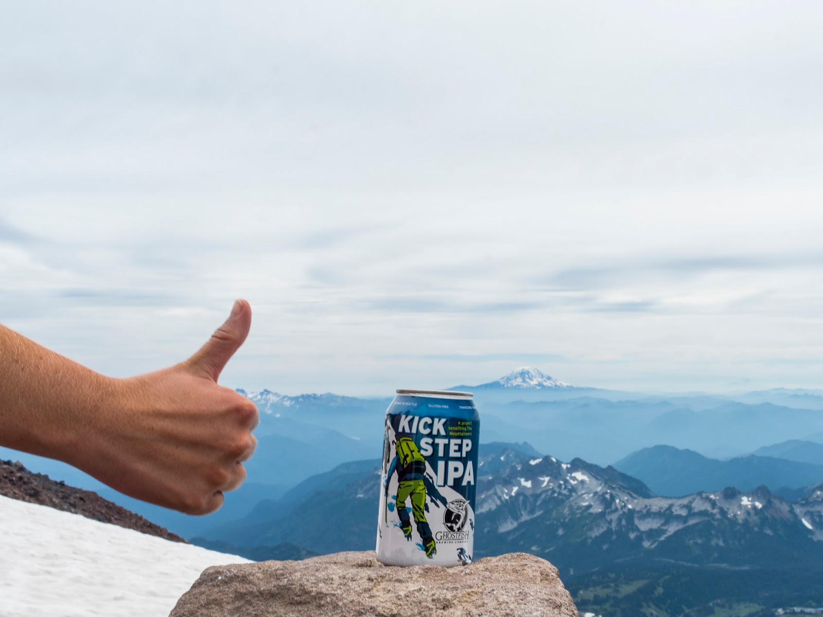 The weather was slightly overcast and calm, but still warm enough to sit at Muir in shorts and a tank top, airing out my sweaty boots and letting my sun shirt dry. Jason hasn’t had “my beer” yet, so I brought a Kick Step for him and he had a good time taking its photo. That can is darn photogenic!