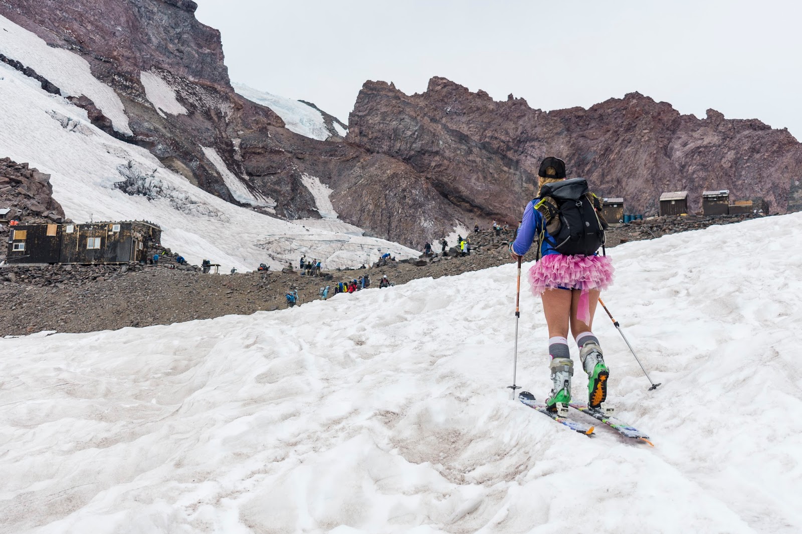 For August turns, I texted my friend Jason to ask if he wanted to go on a hike. Only after he said yes did I clarify that by “hike” I meant driving to a far away place where snow still exists and hiking for a long time, then hitting snow and hiking more so I could ski. AKA we were going on a trip to Mt. Rainier and a hike up the Muir Snowfield. Lucky for me he was still game, and he brought his fancy camera resulting in awesome photos for me. Win win.