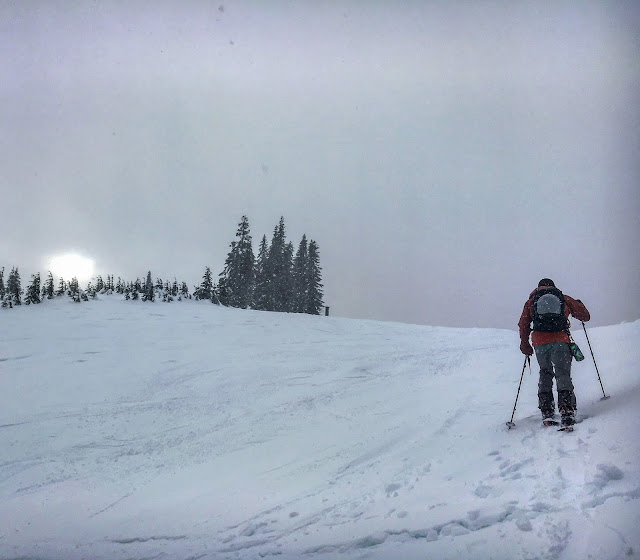 When my buddy Bryan called me to say, “Hey, I feel gross from eating so much, wanna skin tomorrow?” And I said, HELL YES!! So we drove up in the rain, walked through 8″ of slush in the parking lot, and skinned up and over and back down. It was… marginal. But we sweated and got to have beers for late-breakfast and all was awesome.