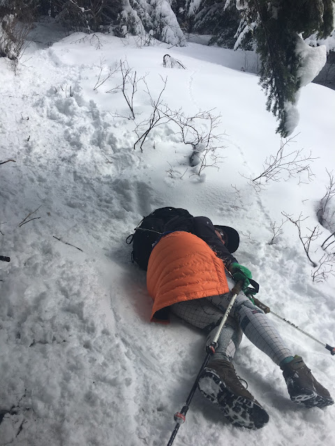| I glissaded down a good portion of the boulder field. On accident. It almost counts as skiing. |