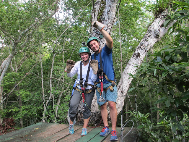 Leave Tikal and stop on the way to go for a Canopy Zipline ride. It’s cheap and sounds like fun. On your way up the first ladder you  see why it’s so cheap, but cross your fingers the jungle hasn’t eaten all of the tower completely and that they can support the weight of you, your travel companion, and the two guides.