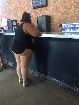 Arrive at the border crossing. Gather your stuff and wait in line, where apparently pants are optional. Get stamp #2 in your brand new passport and walk into Belize to board a new bus. Cars don’t really cross the border here. You have Guatemalan cars and Belizean cars, but not both. Now it’s time for the Belizean bus which has been sitting idle. It’s so hot it makes you nauseous. Power through.